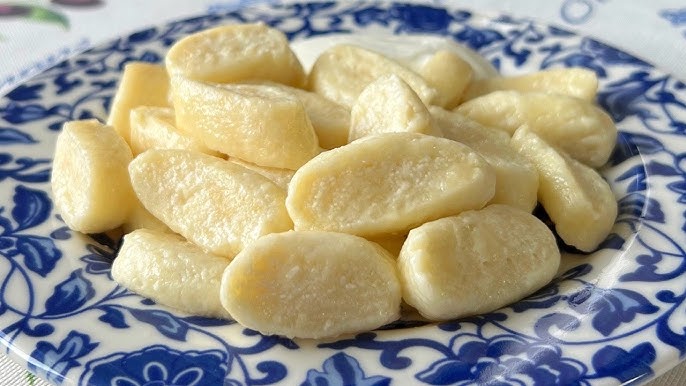 З бананом: 300 г кисломолочного сиру, банан, яйце, 100 г борошна, сіль, цукор, ванілін. Сир розім’яти виделкою, додати сіль, цукор, ванілін на кінчику ножа або ванільний цукор, яйце та перемішати. З банана зняти шкірку, розім’яти до пюреподібної консистенції. Додати до сиру, перемішати. Всипати борошно і ще раз добре перемішати. Сформувати ковбаску і нарізати на шматочки шириною приблизно 1.5-2 сантиметри. Варити до готовності на повільному вогні.
