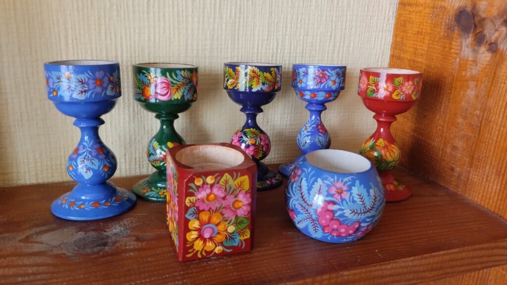 Підвіски, писанки, дзиги, іграшки, магнітики, сопілки, тарілки, сільнички-будиночки, тарілки, дощечки, ложки, лопатки, ступки… – різна сувенірна й кухонна продукція. Як же вона перехоплює подих і закохує в себе. Вправно, професійно й з любов’ю розписана петриківським розписом, вона оживає найяскравішими барвами, квітами-птахами, візерунками-орнаментами й закохує у себе.