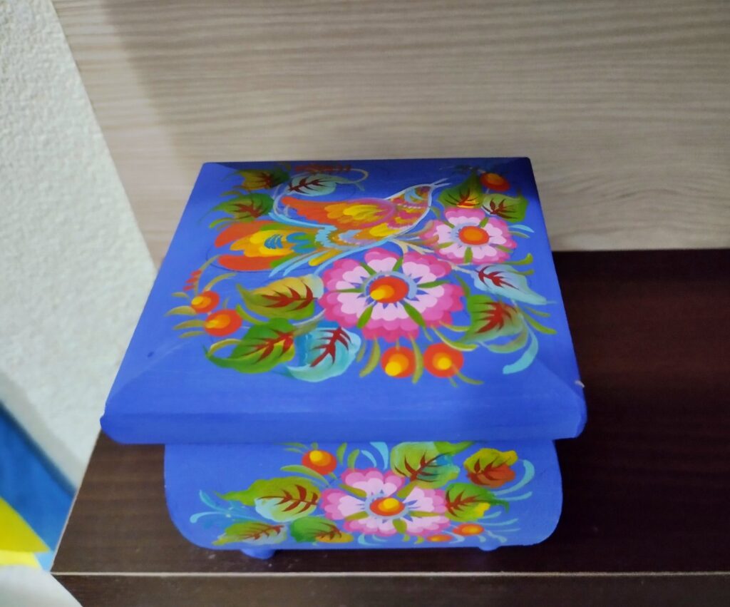 Минулорічного літа жінка залишила роботу і щільніше зайнялася тим, що любить. Хоч зізнається, малювати петриківкою на ватмані – суттєво інші відчуття: і розміри більші, й мазки по-іншому лягають, є фантазії де розгулятися. Утім більше працює з деревом. На вже готові вироби: сільнички, будиночки, ложечки й інше – наносить те, що надиктовує душа. «Заготовки купую в майстрів, які цим займаються, – розповідає Ольга Іванівна. – До нанесення мазків їх ще належно слід підготувати: зачистити, зашліфувати. Якщо колір має бути світлим – нанести кілька шарів клею ПВА, якщо кольоровим – вкрити кілька разів фарбою…» Найбільше, звісно, захоплює, затягує, полонить основний, як мовиться, штрих – власне нанесення орнаменту. Після готовий виріб покривається лаком. «Якщо малюю-розписую в кімнаті, – усміхається художниця, – то лакувати мушу в котельні, бо ж запахи».
