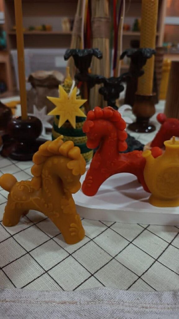 Що стосується краси, що перехоплює подих усіх, кому пощастить її побачити, – свічок, почали їх виготовляти зовсім звичайні, як мовиться, столові. Згодом заливали у нехитрі формочки, що їх замовляли в інтернеті. Нині самі виливають силіконові форми. Адже їхні свічки давно вийшли за межі традиційних, звичних, класичних. Яких лиш форм, кольорів, запахів у крамниці, що нещодавно відкрили, немає. Нарощує свої поки не потужні торги й інстаграмсторінка Сімейної пасіки. Ексклюзивні свічки нині вже вимірюються тисячами. Найбільше полюбилися українцям, надто діаспорним, не лише старовинні хатиночки, млиночки, мотанки, а й автентично тематичні – дідухи, писанки, що історично різні для кожного українського регіону.