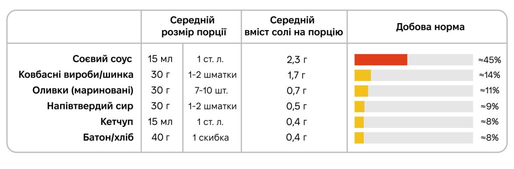 – Рекомендований рівень – п’ять грамів на день. За результатами досліджень Всесвітньої організації охорони здоров’я, середнє споживання солі у світі становить приблизно 10,8 грама на добу, що більше ніж удвічі перевищує рекомендований рівень. Щодо споживання солі в Україні, то воно становить близько 12,6 грама на добу. Це потенційно призводить до гіпертонії та серцево-судинних захворювань. Ще велика кількість солі ускладнює роботу нирок, спричиняє затримку рідини в організмі та викликає набряки. Внаслідок надлишкового споживання солі (натрію) у світі вмирає 4,1 мільйона осіб щороку, тобто майже 10 відсотків усіх, чиє життя забирають неінфекційні захворювання.